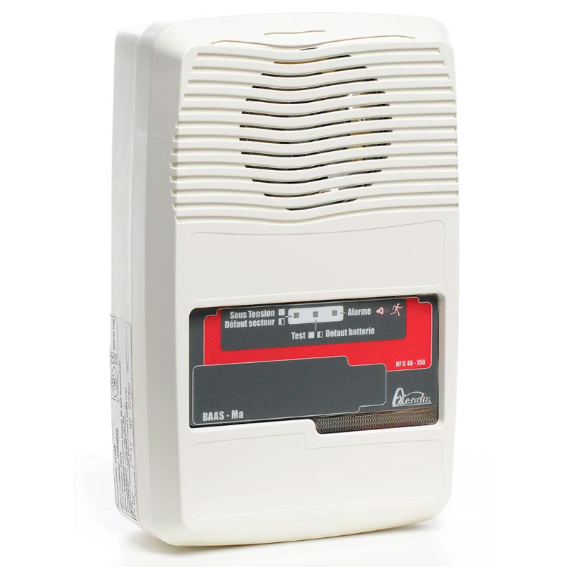 Certifié NF suivant la norme de référence NF C 48-150 de 1989. Les équipements d’alarme type 3, se composent d’un ou plusieurs B.A.A.S (Blocs Autonomes d’Alarme Sonore) de type Ma (Marche arrêt) reliés entre eux par une boucle de déclencheurs manuels. Le B.A.A.S Ma Me comporte un diffuseur sonore et une batterie pour pouvoir fonctionner en cas de coupure de l’alimentation « secteur ». Il dispose d’un message pré-enregistré pour informer vocalement le public en Français (et ou) en Anglais avant de diffuser le signal sonore d’évacuation NF S 32-001 et déclenche la commande d’un asservissement (porte coupe feu, coupure sonorisation, etc…) d’une durée de 5 minutes minimum.