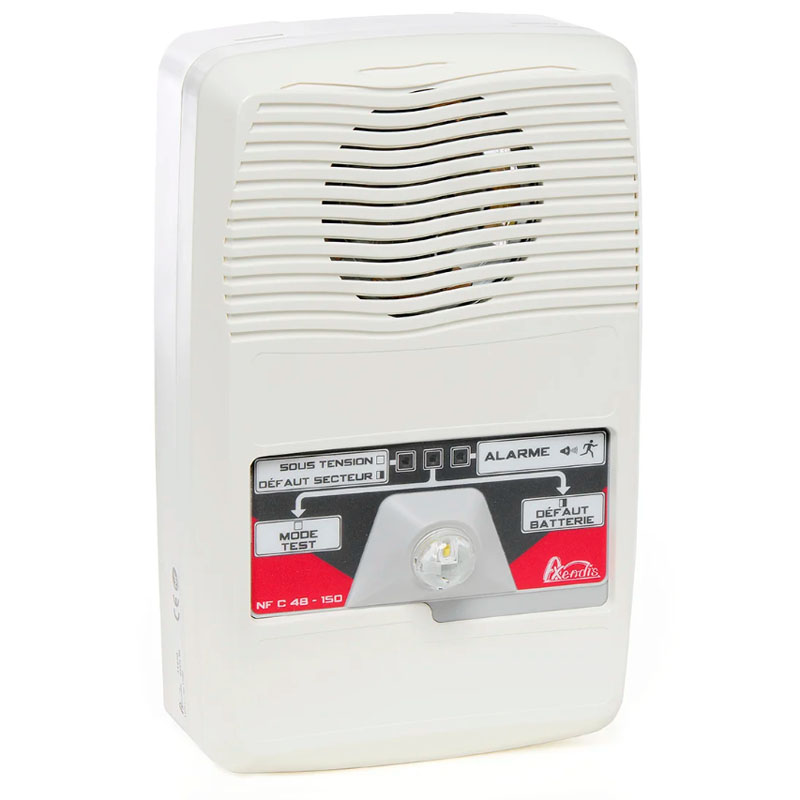 Ils diffusent le signal d’alarme générale NF S 32-001 et déclenchent la commande d’un asservissement (porte coupe feu, coupure sonorisation, etc…) d’une durée de 5 minutes minimum. Il émet également un signal lumineux pour signifier aux personnes malentendantes et sourdes la présence d’un risque d’incendie. Ce dispositif renforcera la perception du signal d’évacuation d’urgence dans les locaux bruyants. Possibilité de mise à l’état d’arrêt ( »alimentation secteur absente ») par un boîtier de télécommande pendant les périodes d’inoccupation des locaux. Le retour à l’état de veille s’effectuera dès la remise en service de l’alimentation »secteur. »