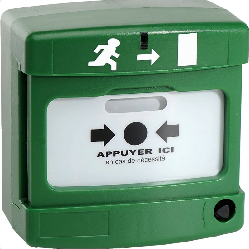 DÉCLENCHEUR MANUEL CONVENTIONNEL D’ISSUE DE SECOURS VERT DOUBLE CONTACT